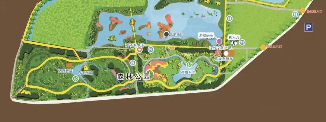 该项目位于汉沙文化广场码头,现有大型观光船、电瓶船、脚踏船、生肖船、造型船,船只特殊设计,颜色古朴,与大自然融合。游览水面面积500亩,乘船可欣赏到芡实、香蒲、鸢尾、荷花、睡莲等多种水生植物,以及小䴙䴘、苍鹭、白鹭、黑水鸡等鸟类。