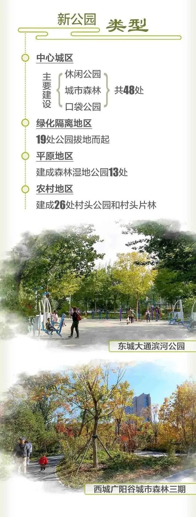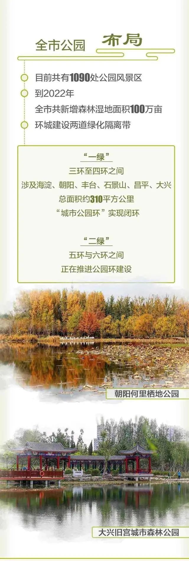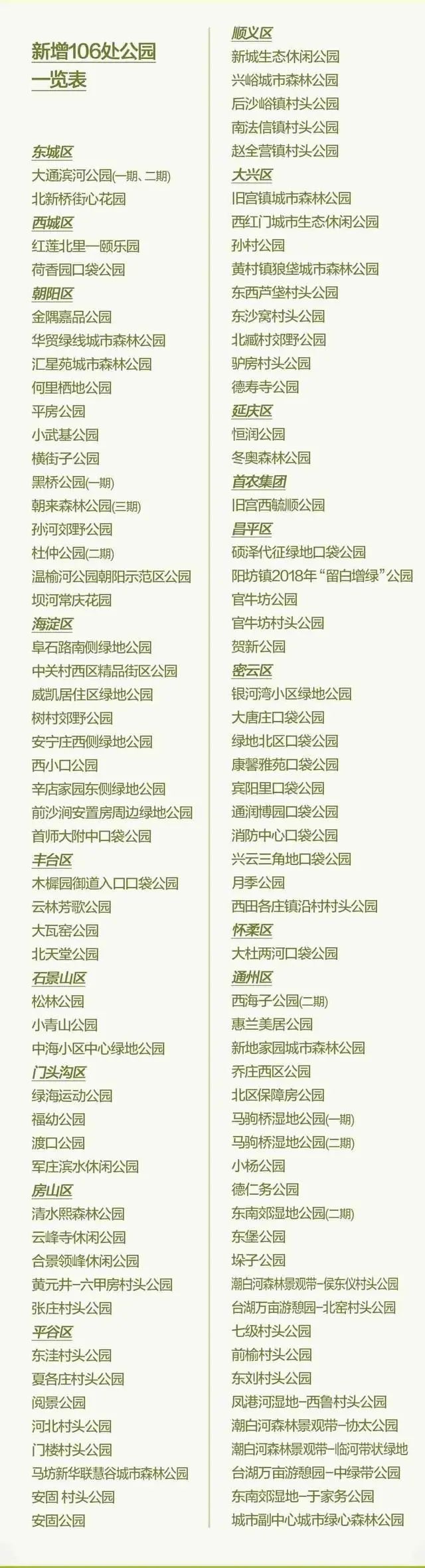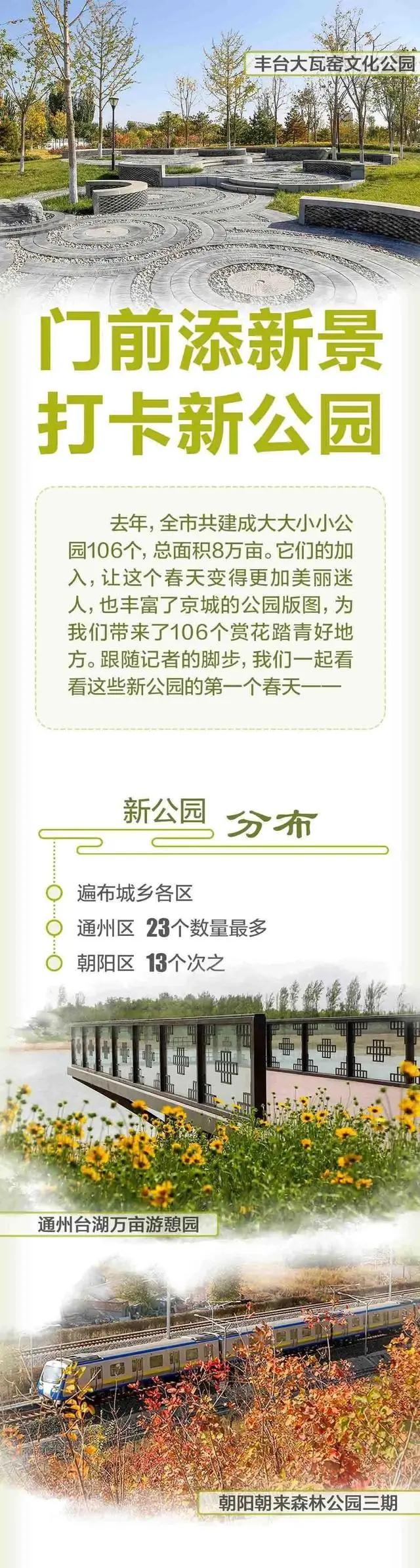 2020年北京市总共建成大大小小公园106个,总面积8万亩左右。它们让北京的春天充满朝气,也让这个春天变得更加美丽迷人,同时丰富了京城的公园版图,为我们带来了106个赏花踏青好地方。让我们快来看看图片,都有哪些公园吧。