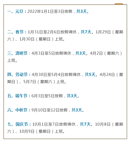 10月25日,国务院办公厅发布2022年部分节假日安排的通知。
