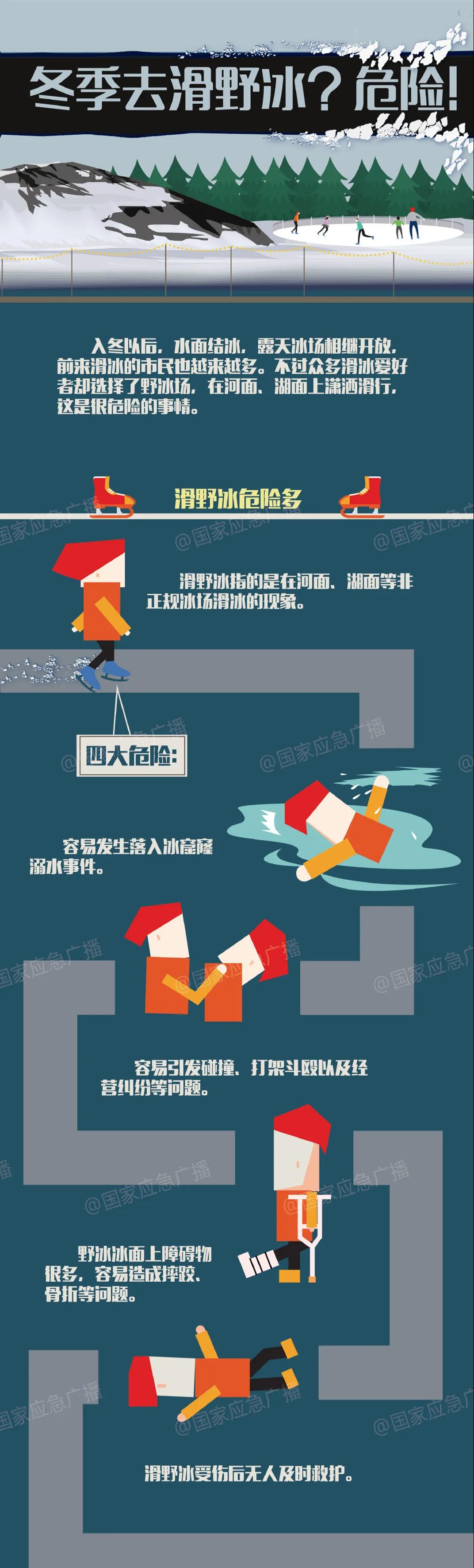 入冬以来,冰面结冰,部分露天冰场开放,前来滑冰的市民也越来越多。不过有些滑冰爱好者却选择了野生冰场,在河面、湖面上潇洒滑行。注意了,这是很危险的事情!野生冰场冰面很薄,十分危险,切勿轻易上冰嬉戏!