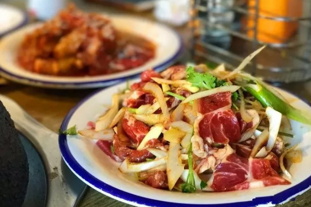肥瘦相间羊肉几乎是每桌必点的肉很入味,吃起来特别香,而且肉片很厚实,嚼起来炒鸡有满足感!!