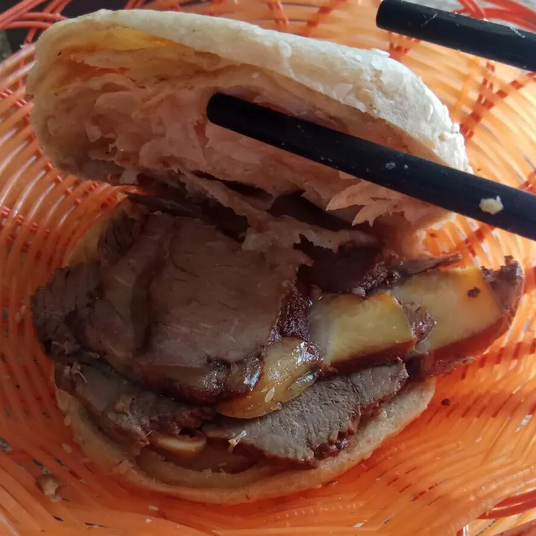 烧饼夹驴肉、猪耳朵、肘子……小编说的口水直流,不过最爱的是驴肉,片大筋儿多,肉质很软烂,配上酥脆的小饼,让人越吃越香啊!