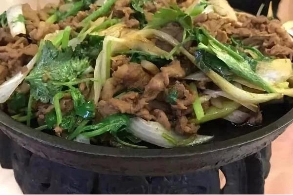炙子烤肉要把肉和菜一起翻炒才香,味道和单独炒肉不一样,香味马上就飘出来了。肉很鲜美,炒熟的肉蘸着辣椒粉或者孜然粉一起吃,香味太浓,这种感觉太美了。地瓜和鱼豆腐一直都是迎迎的最爱,不知道炒着吃味道怎么样呢?实践证明,炙子烤肉不论肉还是菜都很好吃,地瓜和鱼豆腐吸收了一定的油水之后,吃起来更香了,这种香味和涮火锅不一样,比涮火锅更浓更有回味。