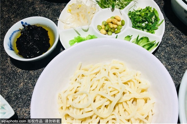 谁说在商业气息浓郁的南锣鼓巷里没有纯粹的老北京味儿?这家黑八藏在胡同最深处,店面不大,只有几张桌子,但却有种小时候在邻居家吃饭的赶脚~他家的菜码儿不多,就是常规的三种:黄瓜丝、白菜丝、心里美萝卜丝~炸酱咸淡刚刚好,面条是过水的,吃起来劲道爽滑!