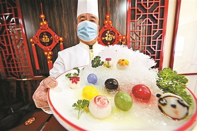 此外,峨嵋酒家这家老字号的面点大师们心灵手巧,不但用蔬菜汁、水果汁调出了“五彩”汤圆,还在冰雪季献上了一款冰雪熊猫特制版的汤圆,新意十足。除了黑芝麻汤圆,还有巧克力、蛋黄流沙、糖醇花生、山楂等多种口味,满足消费者需求。