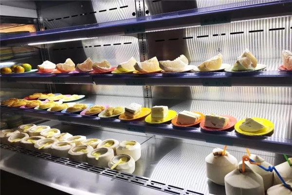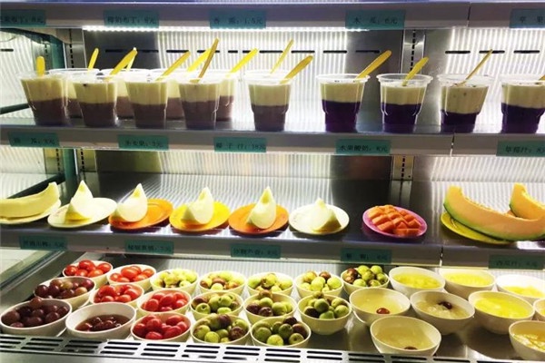 水果、凉菜、甜点、酸奶、鲜榨果汁等等,整整齐齐摆放好,并标注了价格,想吃什么随意拿。小编不禁要感叹一翻,有这样的食堂餐标,农大的学生真的好幸福啊!