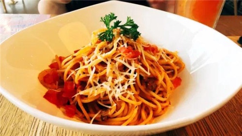 你要是以为山外只是一个外表光鲜的简单咖啡馆那就大错特错了,小店内的菜品也很丰富,牛排、比萨、沙拉、意面、三明治、饭,应有尽有。