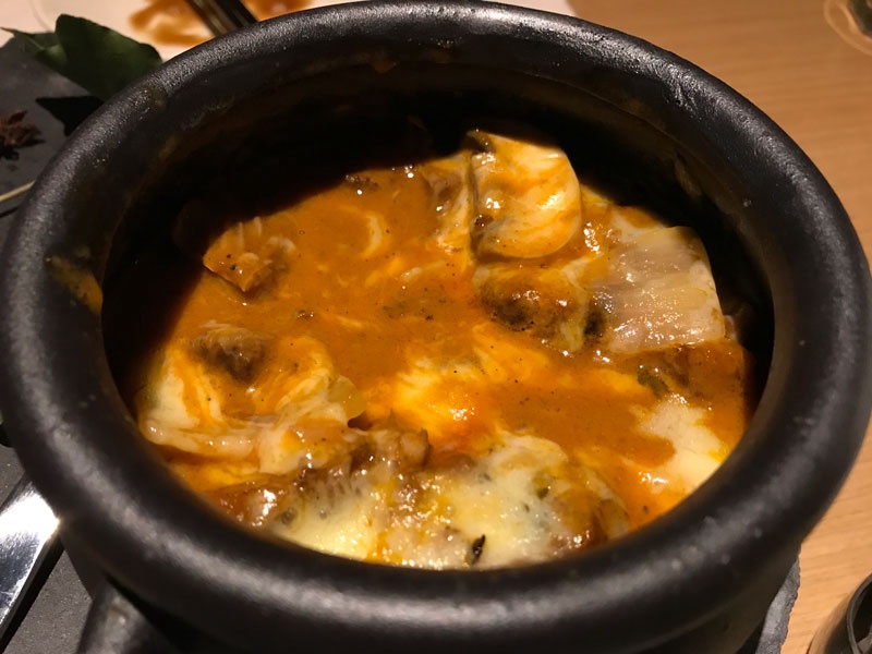 石烧南煎丸子刚端上来的时候,汤汁在高温的石板上不停翻滚,非常诱人,让人口内生津,很想马上品尝一口。这时服务员会面带笑容提醒你,石板温度高,小心烫伤。丸子的味道很浓郁,肉质也非常鲜嫩,丸子不松也不紧,口感恰到好处。
