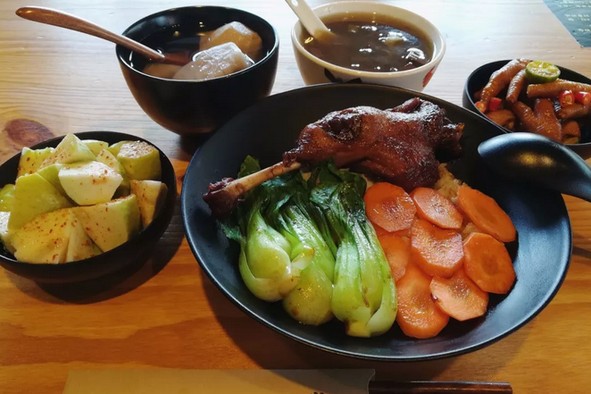 米粉口感偏甜,别忘了来点老板自制的海南辣椒酱。除了招牌的米粉,还有米饭可选。猪血汤、街边芭乐这些传统小吃都有。
