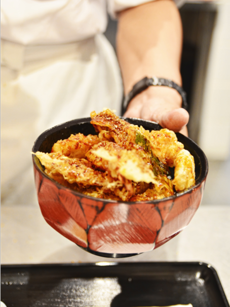 丼饭相当于在日本的盖饭,和中国充满烟火气的盖饭不同的是,来自日本的盖饭一如既往的传承了日料的性冷淡风。看起来冷静,吃起来却一点都不含糊~全都归功于店里秘制的天丼汁给这一碗诚意满满的饭增色不少。M小买日料的这一碗天妇罗丼里面有3只甜虾,一口下去紧致Q弹的虾肉让人根本停不下来。