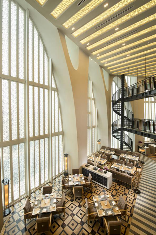 Chapter美食图书馆 — Chapter餐厅以其独特的风格改写了仅提供日常三餐的传统餐厅概念。在充满趣味的“美食图书馆”氛围和独特而充满创意的格局中,宾客可尽享多种纯正的就餐体验。步入Chapter餐厅,犹若置身于充满欧洲气息的图书馆中,又如来到充满神秘气息的古堡,沿着镂空旋转楼梯徐徐而上,走过一整面的书墙,感受旧日时光的温暖。三层书墙对面高大的落地窗让阳光毫无遮拦地倾泻进来,整个餐厅弥漫着温馨、浪漫、诗意和情怀。