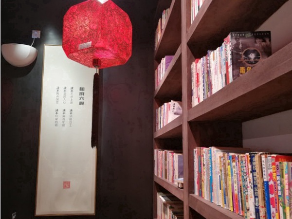 饭店的装修风格很新颖,中式的装修让整个店内显得端庄大方,不过要说到店内最独特的地方,那一定就是书架,饭店四周的墙边放满了书架,书架上的书可供客人阅读,这样新式的饭店,小编真心还是第一次见到。在这儿用餐服务员不会催促客人,即使你用餐完毕,坐下读一本书,让物质粮食和精神粮食同时作用于身体也无妨。