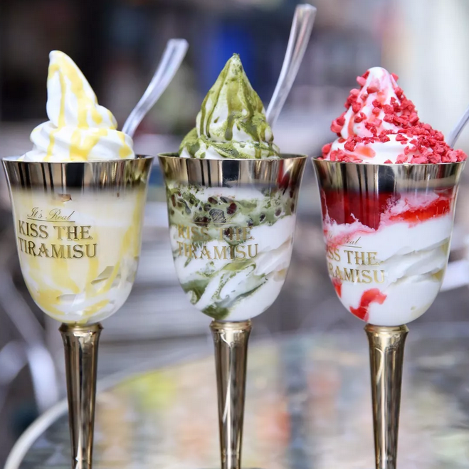 冰淇淋都是现点现做,鲜果配料都自己腌制,一共有5种口味,最近还新出了甜蜜的巧克力提拉米苏口味。除了高脚杯冰淇淋,店里还有特色冰淇淋拿铁和饮料供应哦。