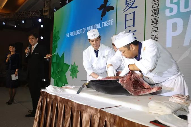 特从日本长崎空运蓝鳍金枪鱼进行现场切分表演,切好的金枪鱼作为生鱼片口感饱满,肉质鲜嫩,入口即化,唇齿留香。
