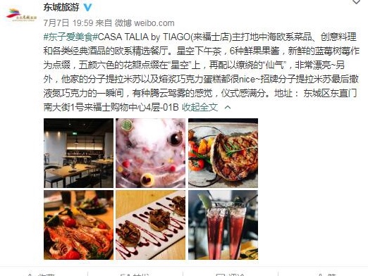 CASA TALIA by TIAGO(来福士店)主打地中海欧系菜品、创意料理和各类经典酒品的欧系精选餐厅。星空下午茶,6种鲜果果酱,新鲜的蓝莓树莓作为点缀,五颜六色的花瓣点缀在“星空”上,再配以缭绕的“仙气”,非常漂亮~另外,他家的分子提拉米苏以及熔浆巧克力蛋糕都很nice~招牌分子提拉米苏最后撒液氮巧克力的一瞬间,有种腾云驾雾的感觉,仪式感满分。