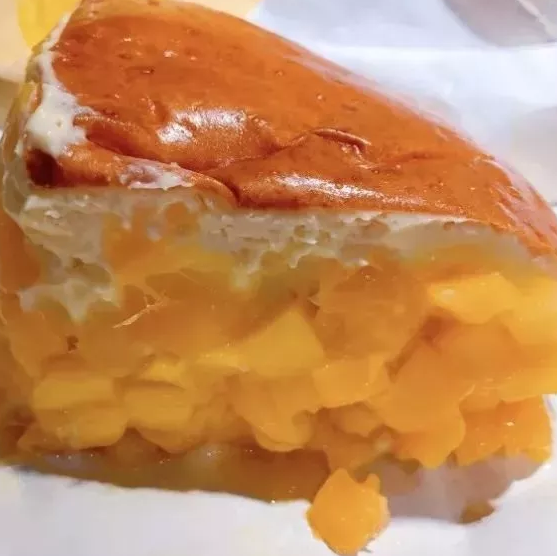 芒果的清香,综合入一层层的芝士面包里,悉悉索索芒果果粒,塞满了外延暴露出来的芝士包~