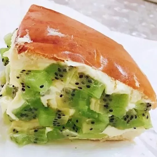 清澈透亮的奇异果简直是乳酪包里的一股清流,还没吃到嘴里就觉得清爽不腻很夏天!奇异果芝士面包口感非常清爽,外层大颗的奇异果十分开胃,包体也非常的立挺~