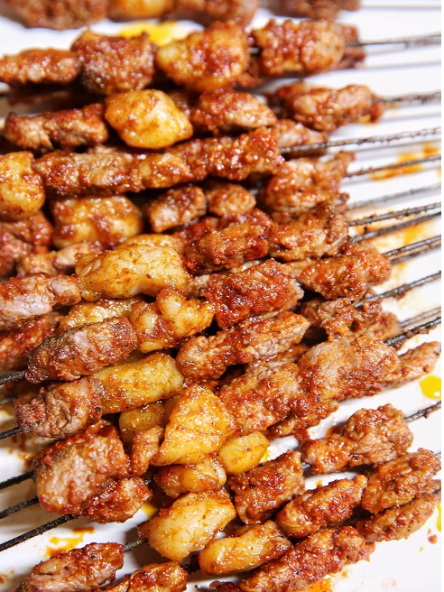 鸡翅、鸡皮、羊肉串、鸭舌、虽然价格,卖法不一样,但是个个都是超级大,超级大肉串,肉意满满,配上秘制的沾料,让你吃到忘我,不能停下来。