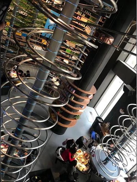 在蓝色港湾美食街的餐厅,位置比较好找,就在一层底商,失重餐厅是一定要来打卡的。极具科技感的设计、无人轨道上菜系统、17秒食物从天而降,让进去的人都有一种“来到未来”的错觉。