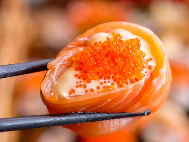 清爽的内陷,弹口的醋饭,干脆的海苔,爆汁的蟹籽,这五层一块咬下去。