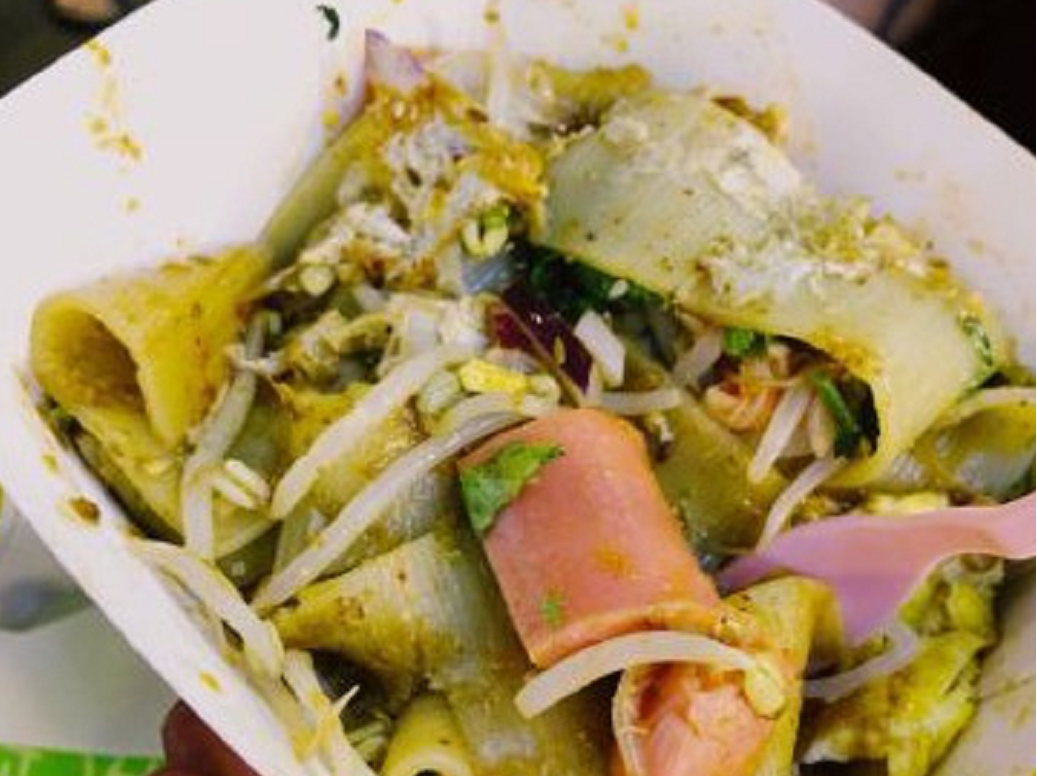 敢在四环称王的不是别的,而是一家烤冷面!招牌烤冷面是酸甜辣口味的,面皮劲道,馅料十足,里面的金针菇超级好吃好吃,一口烤冷面,一口香肠,就是满足味蕾的过程。