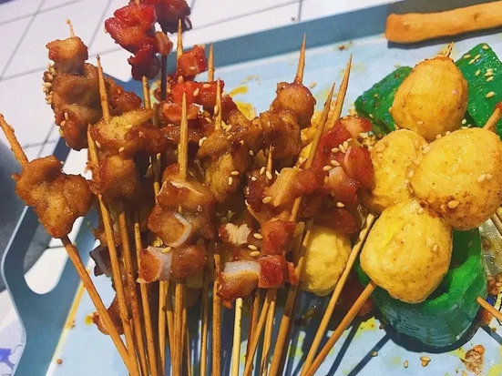 抖音里超火的那种炸串,在这家就能吃到。它们虽然都小小的个头,但蘸着干料碟更突出内部的嫩,每一串味道都很好。