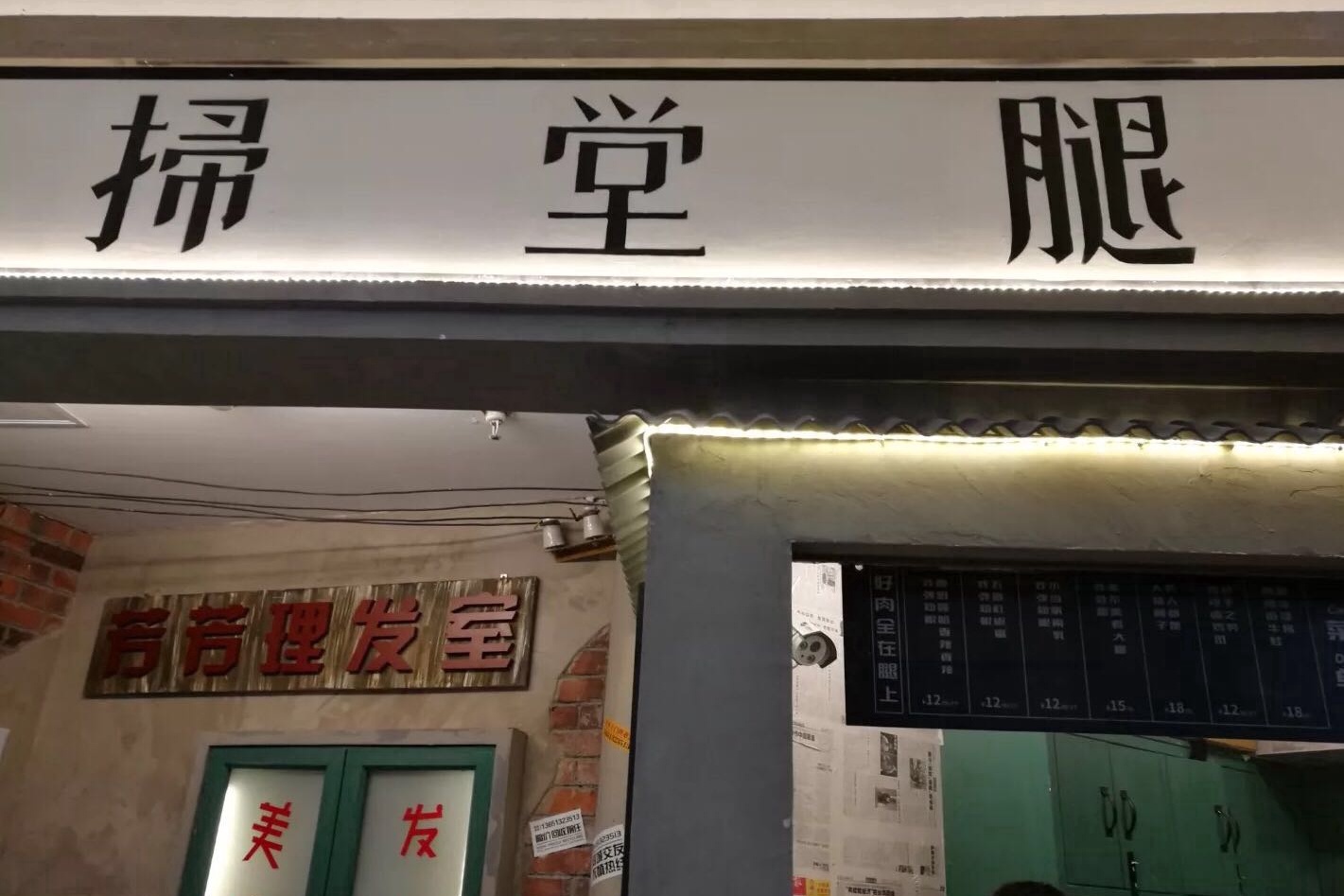 小店的门脸被打造成复古的窗框形象,上联:“小饿小馋去哪好”;下联:“楼下小店最地道”,原来世间美好,就在自家小区楼下。店家宣称,这扫堂腿的腿可以满足你对腿的一切幻想,原来这家买的都是腿腿腿腿!