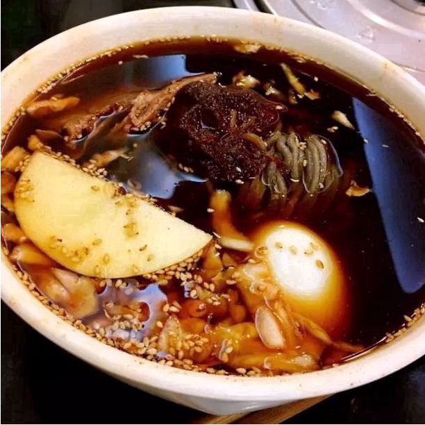 凭借着一碗冷面就能上到北京必吃榜的餐厅,肯定是有自己的实力的,夏天最爱的就是冷面,酸酸甜甜,凉凉爽爽的。气泡冷面,仪式感超强,气泡汤看起来清凉消暑,苹果片鹌鹑蛋牛肉泡菜丝,用料十足,冷面劲道有咬劲儿,锅包肉外脆里嫩,浓厚酸甜的