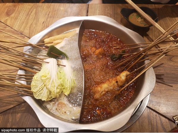 串串金,无比奢华的冷锅串, 位于鼓楼大街最热闹的街边, 肉食和素食都源自四川乐山, 底料也是乐山师傅亲手挑选。另外,需要说明的是他家是上午11点开店,来早了可吃不上哦。