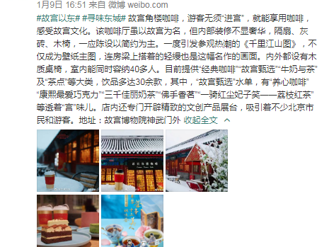 目前提供“经典咖啡”“故宫甄选”“牛奶与茶”及“茶点”等大类,饮品多达30余款,其中,“故宫甄选”水单,有“养心咖啡”“康熙最爱巧克力”“三千佳丽奶茶”“佛手香茗”“一骑红尘妃子笑——荔枝红茶”等透着“宫”味儿。店内还专门开辟精致的文创产品展台,吸引着不少北京市民和游客。