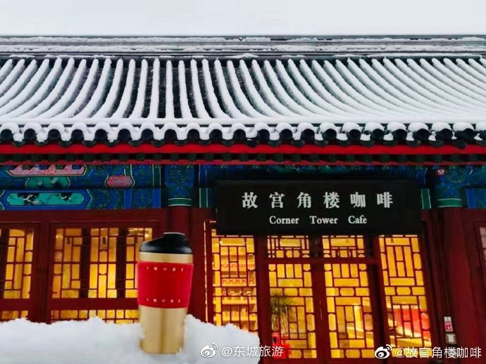 故宫角楼咖啡,游客无须“进宫”,就能享用咖啡,感受故宫文化。该咖啡厅虽以故宫为名,但内部装修不显奢华,隔扇、灰砖、木椅,一应陈设以简约为主。一度引发参观热潮的《千里江山图》,不仅成为壁纸主图,连房梁上搭着的轻缦也是这幅名作的画面。内外都设有木质桌椅,室内能同时容纳40多人。