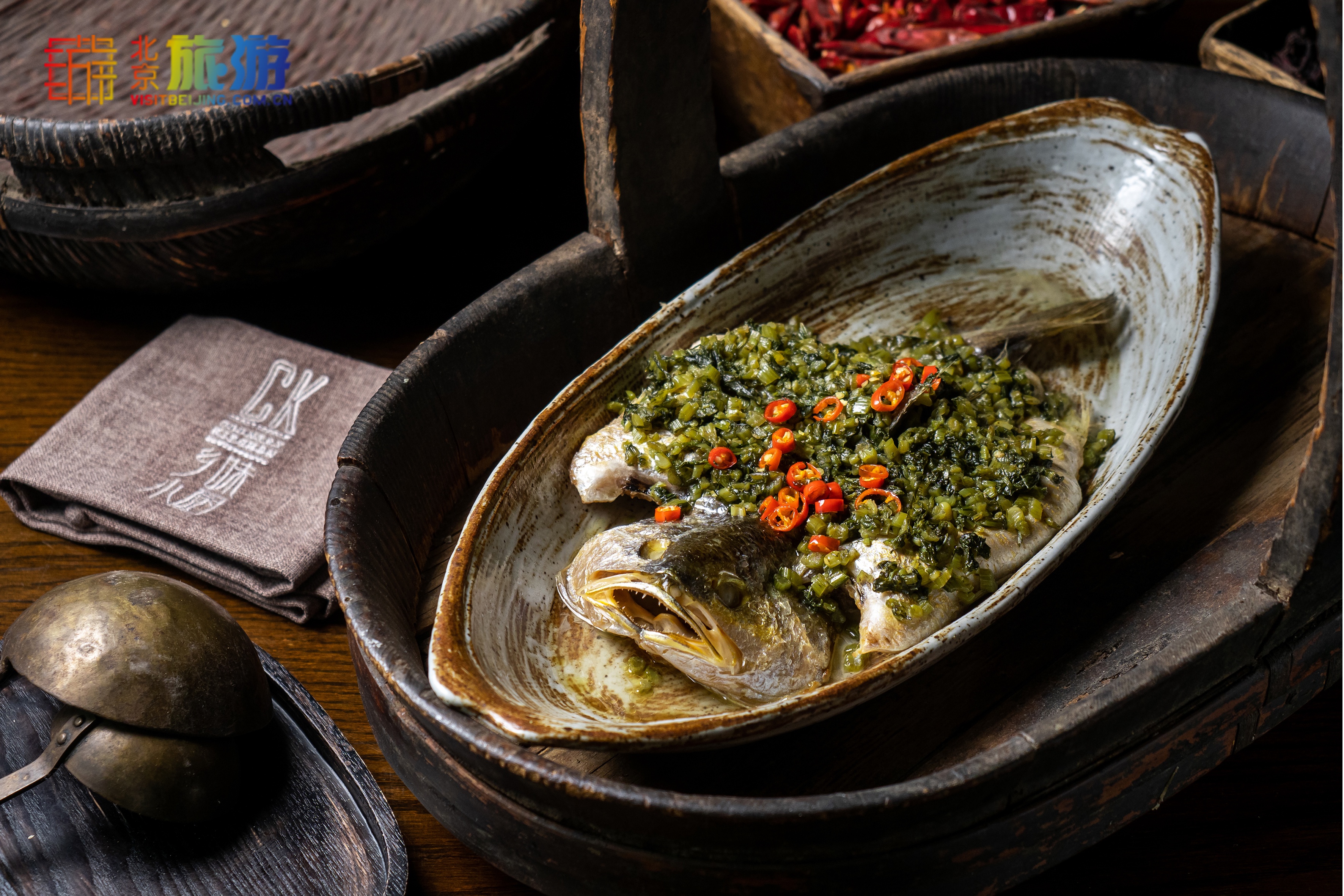 餐厅墙壁均由从北京郊区收集而来的老房古砖搭建成,并用陶瓦、柴火炉和乡土陶器加以点缀,为餐厅营造出温馨、愉悦的氛围。餐厅重视传统中式餐饮,同时向现代餐饮理念致敬,户外露台可俯瞰城市景观,同时也是眺望首都地标建筑央视大楼的绝佳位置。