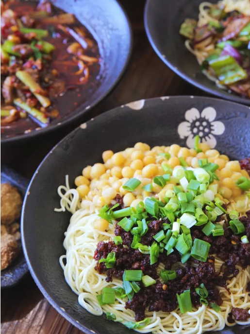 最受欢迎的是干拌豌杂面,也可以做成汤面和米粉,选择特别多,它家的辣椒油都是从重庆带过来的,老板娘一口川普,待客很热情。