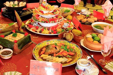 养生宴上的特色菜,就包括利用园内特有自产的“树熟”木瓜和番石榴制作的“五季养生圣果炒虾球”富有特色,深受游客喜爱。