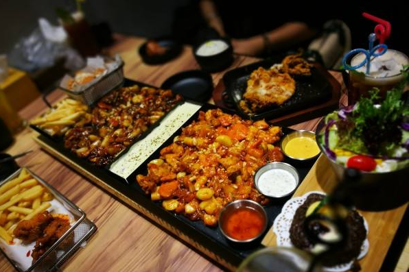 和大多数韩料一样,口味偏甜辣,鸡肉有五种口味(原味/微辣/中辣/甜辣/重辣)可选,其中重辣慎选,除非你是高度喜辣者。性价比高,75cm的分米鸡,鸡肉都很足量,套餐里面还有牛肉饼、蔬菜沙拉、薯条、炸鸡,品种还蛮丰富的。最后剩下的鸡肉可以拌饭吃,味道还不错,金枪鱼饭团很好吃。