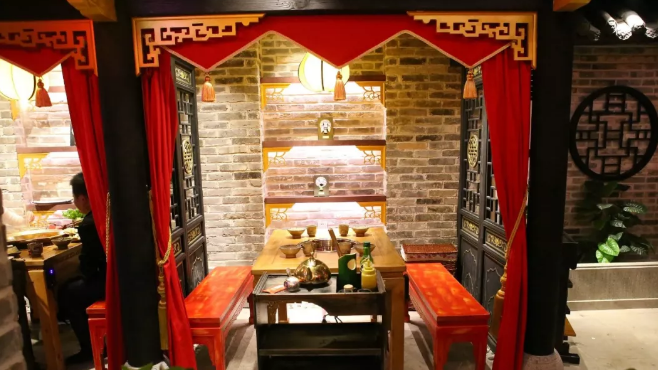 一进入店门,小编就被这里的装修深深吸引了,店内是满满的蜀风川韵,整体氛围古香古色,庄重大气。