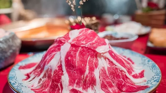 伊赛雪花肥牛,单片肥牛比手掌还要大!并且每一片雪花肥牛都肥瘦相间,放在红油锅涮15秒,肉质鲜美口感回味无穷。