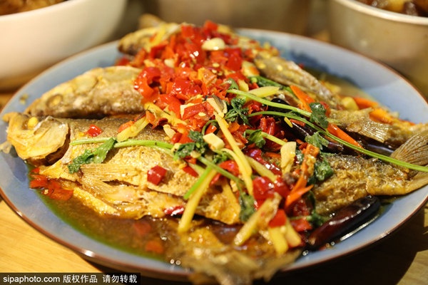 吃徽菜,自然少不了招牌菜臭鲑鱼,鱼是腌制发酵过的,大块白嫩的蒜瓣肉,口感紧实爽口,臭的恰到好处。臭豆腐量很大,有白的和黑的两种。很多人通过舌尖上的中国认识到了毛豆腐,口感和平时吃的南豆腐、北豆腐不一样,又细又绵软,颇具特色。
