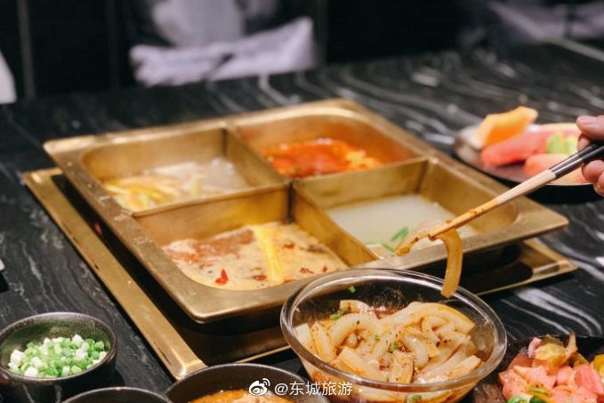 王家渡火锅在北京有很多家门店,金宝汇店环境无可比拟,仰头就是姿态各异的火树银花,空间开阔,用餐体验极佳。它家有麻辣、松茸、酸菜和番茄锅四种锅底,悄悄说:可以有三选锅操作哟~