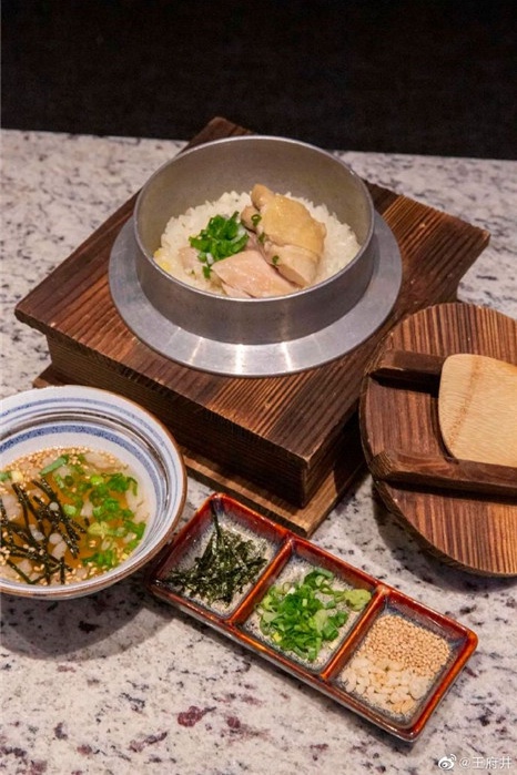 特制鸡肉釜饭,可搭配三种配料制成茶泡饭的双重享受,令人难以抗拒。
