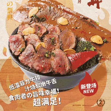 食肉者的双重快乐,实打实吃肉的感觉!菲力牛舌丼,新品硬核上市啦!快点和小伙伴来尝一下吧~