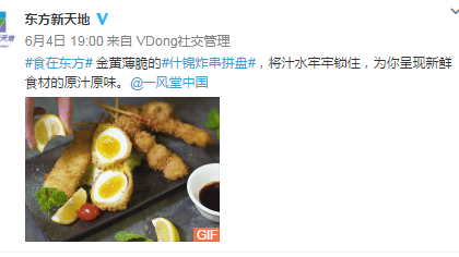 东方新天地官方微博日前推荐了东方新天地内的一风堂中国的一道菜——什锦炸串拼盘,令人馋涎欲滴。