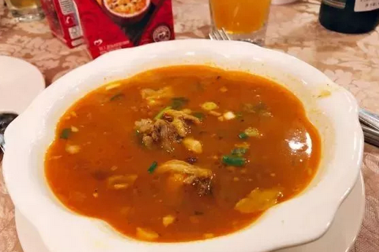 薯条切得很细,炸得焦脆,蘸上浓稠的沙拉酱,口感香甜脆爽。俄式羊排汤,让不少去过俄罗斯的人都连连赞叹,羊肉处理得很香,没有一丝的膻味。再来个俄罗斯传统的罐焖牛肉,简直肉食者的天堂。