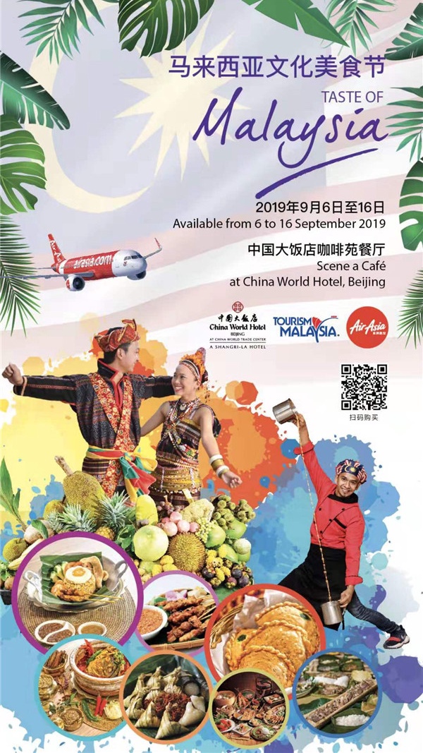 2019年8月30日——2019年9月6日至16日,北京中国大饭店携手马来西亚驻华大使馆和马来西亚亚洲航空公司在咖啡苑共同举办马来西亚文化美食节。北京中国大饭店区域行政总厨张景洲先生将与来自马六甲州的两位娘惹菜特级厨师为京城美食爱好者倾情呈献正宗马来西亚美食!