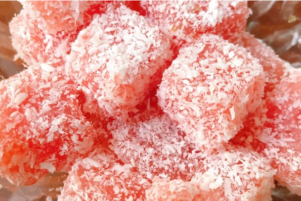 西红柿去皮放料理机打成泥,淀粉加水调开,西红柿泥,淀粉和糖(糖根据西红柿的酸甜度自己调)一起加入不粘锅,小火搅拌成粘稠状,倒入容器放冰箱至凝固,凝固好切成块,沾上椰蓉就可以吃了。