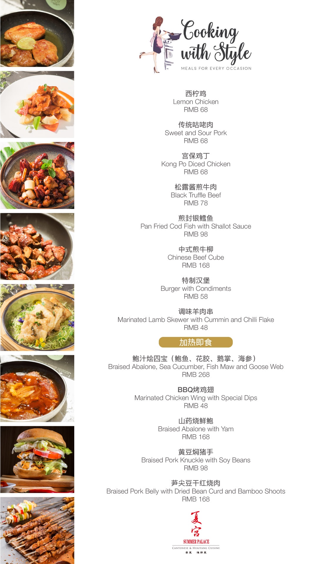 夏宫外卖菜单,丰盛美味,只需提前扫码点餐,下班随取随走,与家人分享美味,畅聊一天的奇闻趣事。