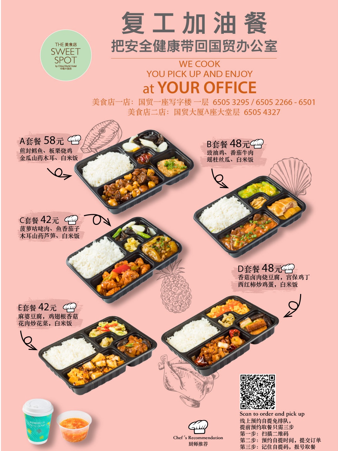 美食店五套科学搭配的复工加油套餐,用餐三十分钟,充电满格。
