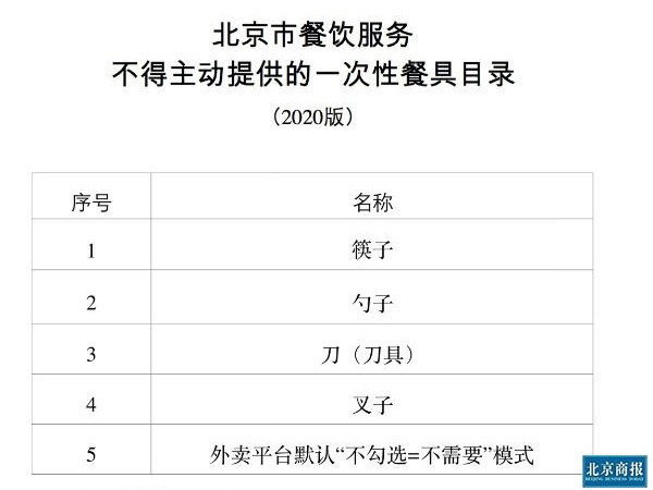 图片来源:《北京市餐饮服务不得主动提供的一次性餐具目录》截图