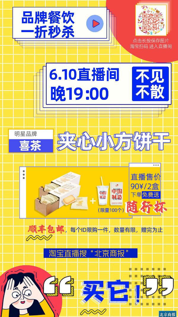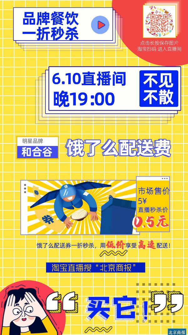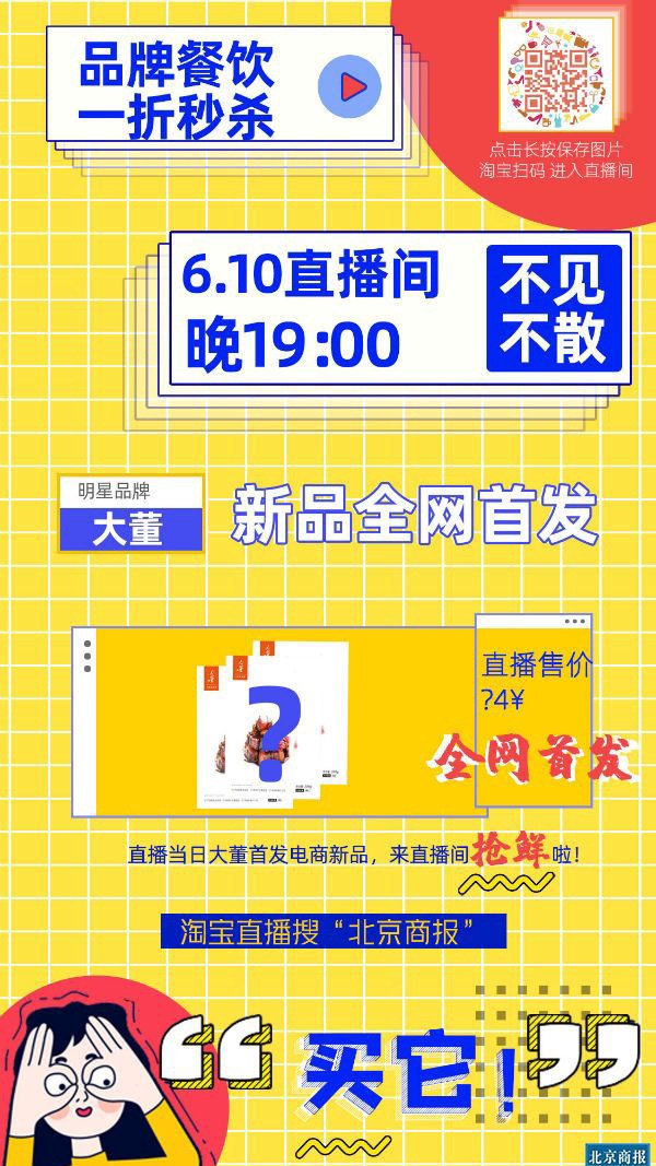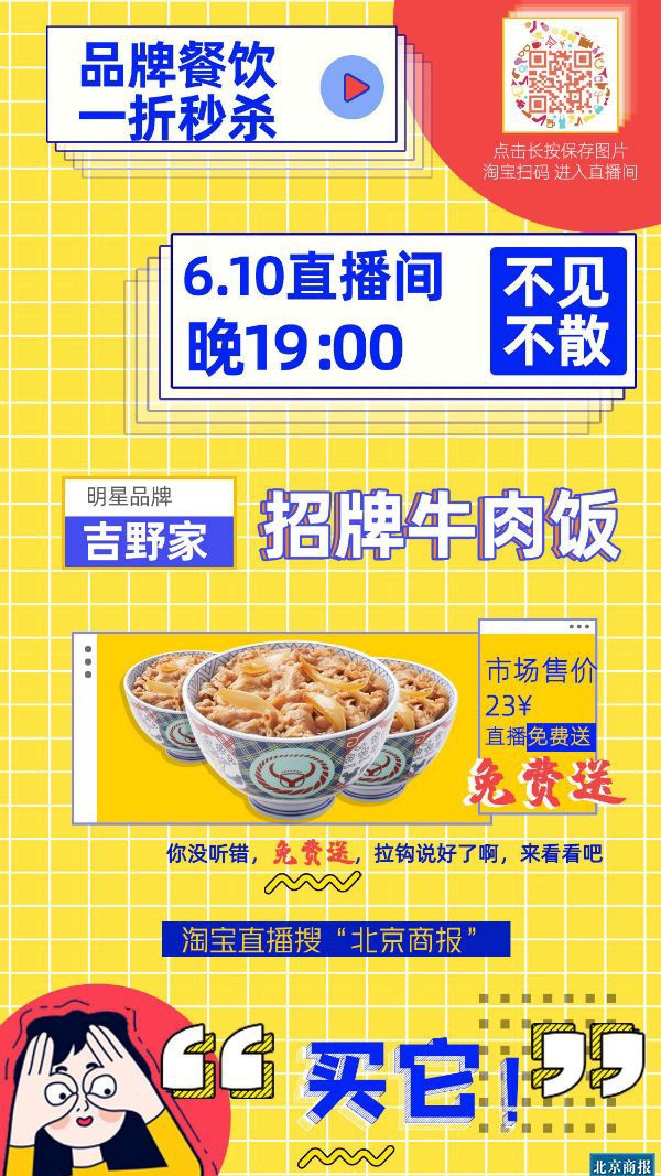 全城31家餐饮及网红茶饮品牌、35款经典产品,于6月10日晚上7点悉数出镜“北京商报”淘宝直播间,超低价“云开饭”。