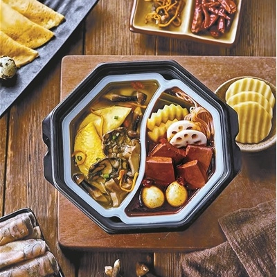 随着更多品牌加入即食火锅的赛道,其种类和口味也愈发丰富。精选食材加入火锅底料,通过自带发热包迅速升温煮开锅底,滚烫的即食小火锅让单身人士宅家也实现了火锅自由。除了传统的麻辣锅、番茄锅,菌菇鸡汤和麻辣牛肉组成的鸳鸯火锅也“横空出世”,一次满足多种口味需求。